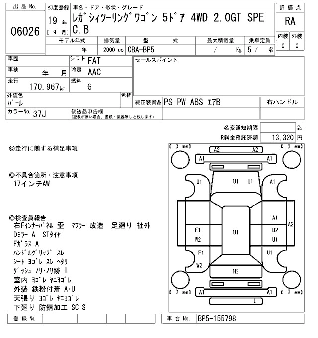 Статус выставлен на аукцион Лот 6026 Аукцион ARAI Sendai Дата аукциона 13.03.2026
