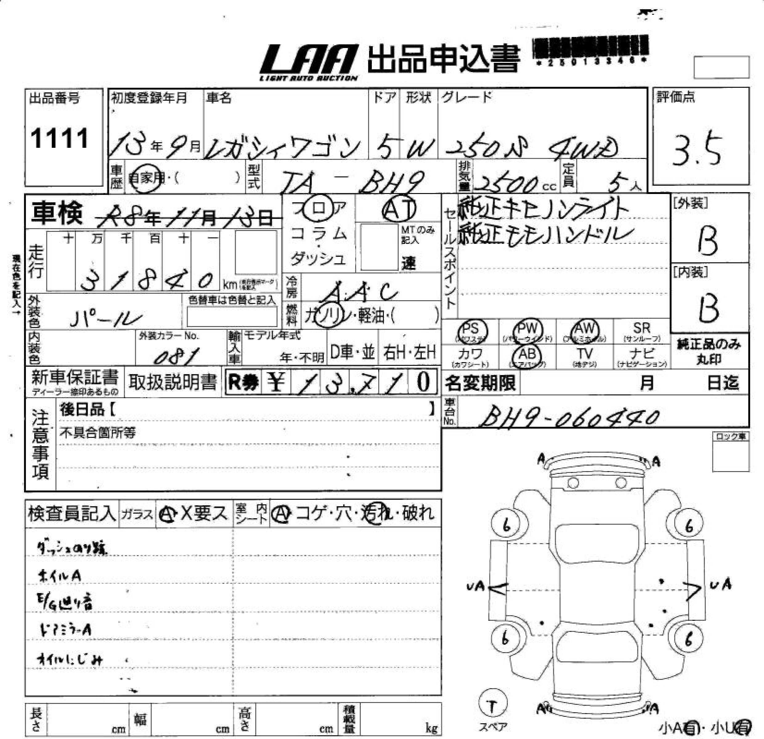 Статус не продан Лот 1111 Аукцион LAA Shikoku Дата аукциона 18.03.2026