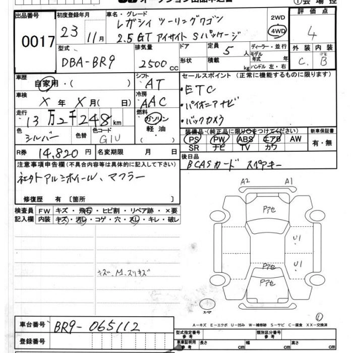 Год выпуска2011 Пробег 132 000 км КузовBR9 Комплектация4WD 2.5GT EYESIGHT S PACKAGE