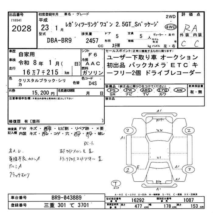 Год выпуска2011 Пробег 167 000 км КузовBR9 Комплектация4WD 2.5GT S PACKAGE