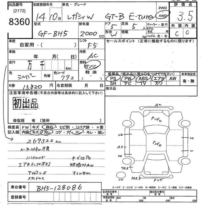 Год выпуска2002 Пробег 269 000 км КузовBH5 Комплектация4WD GT-B E TUNE