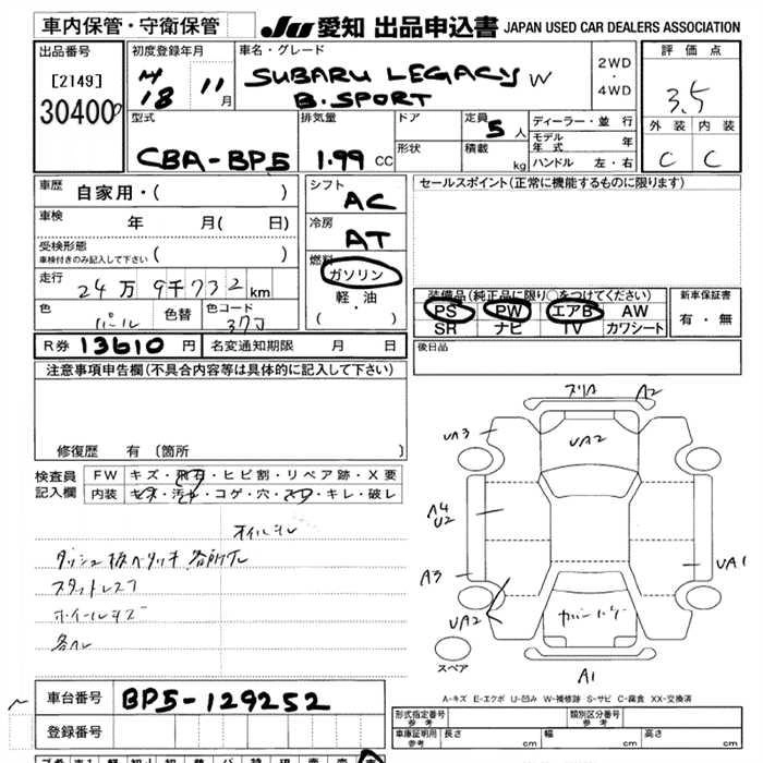 SUBARU LEGACY WAGON 2006 г., лот № 30400