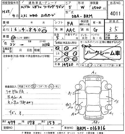 SUBARU LEGACY 2013 г., лот № 4011