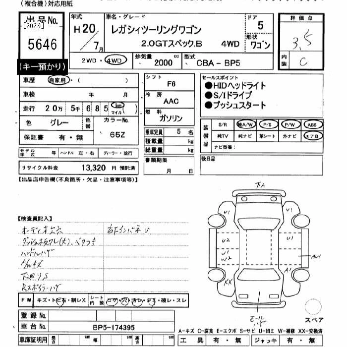 Год выпуска2008 Пробег 205 000 км КузовBP5 Комплектация4WD 2.0GT SPECIFICATIONS.B