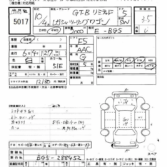 Год выпуска1998 Пробег 64 000 км КузовBG5 Комплектация4WD GT B LTD
