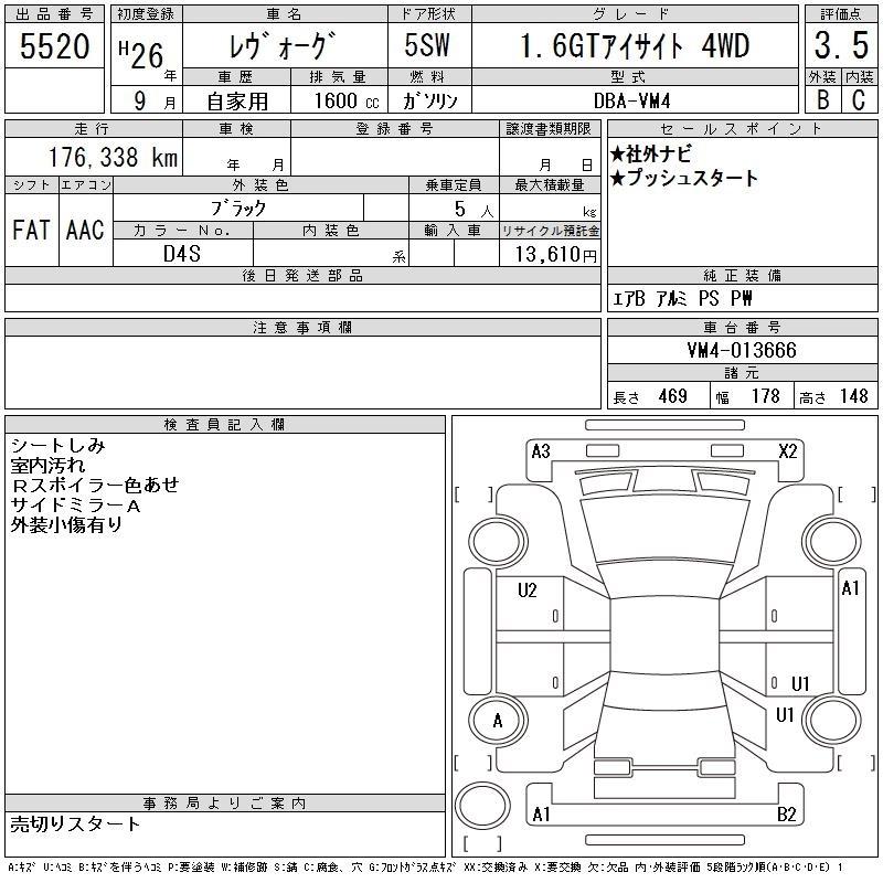 SUBARU LEVORG 2014 г., лот № 5520