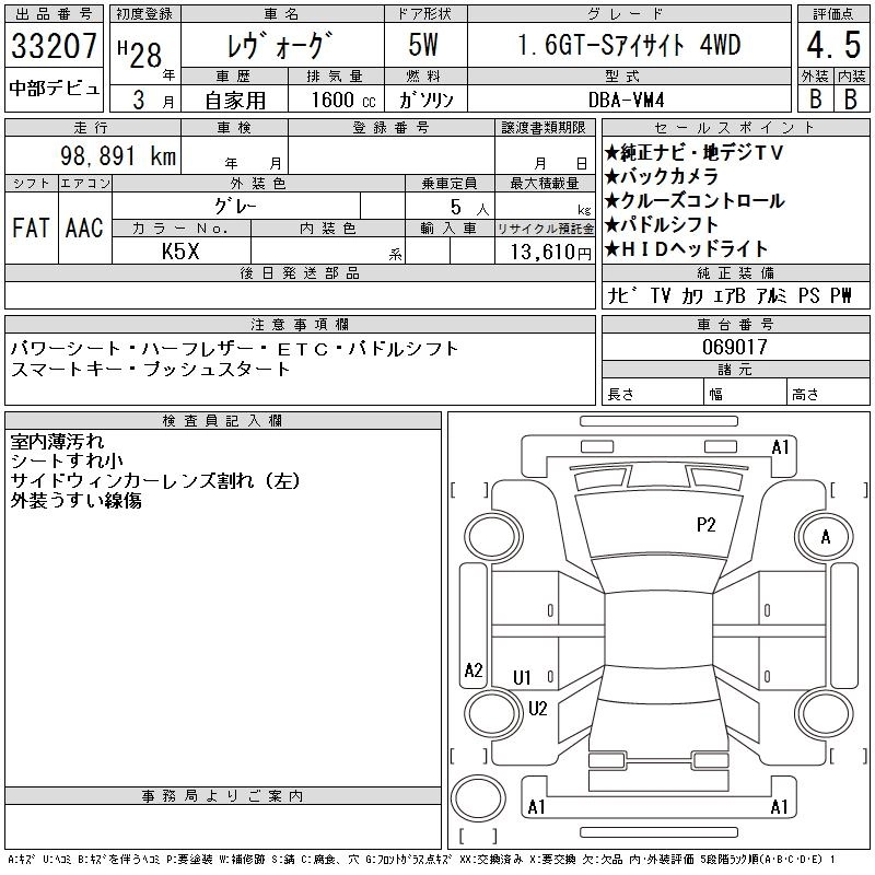 SUBARU LEVORG 2016 г., лот № 33207
