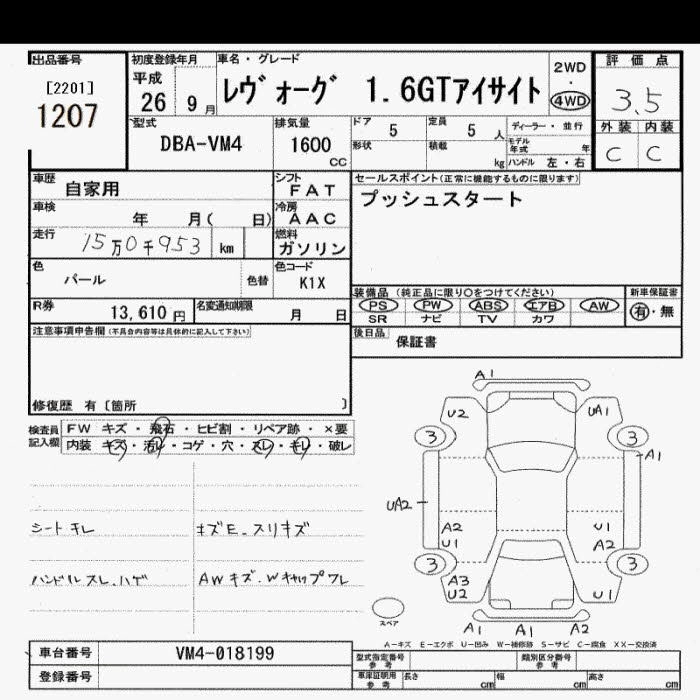 Год выпуска2014 Пробег 151 000 км КузовVM4 Комплектация4WD 1.6GT EYESIGHT