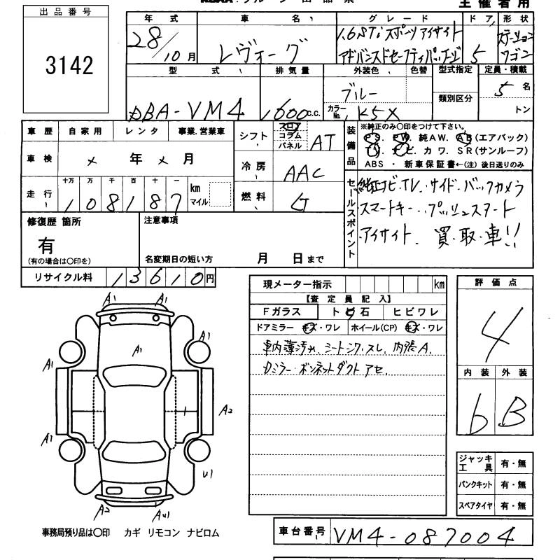 SUBARU LEVORG 2016 г., лот № 3142