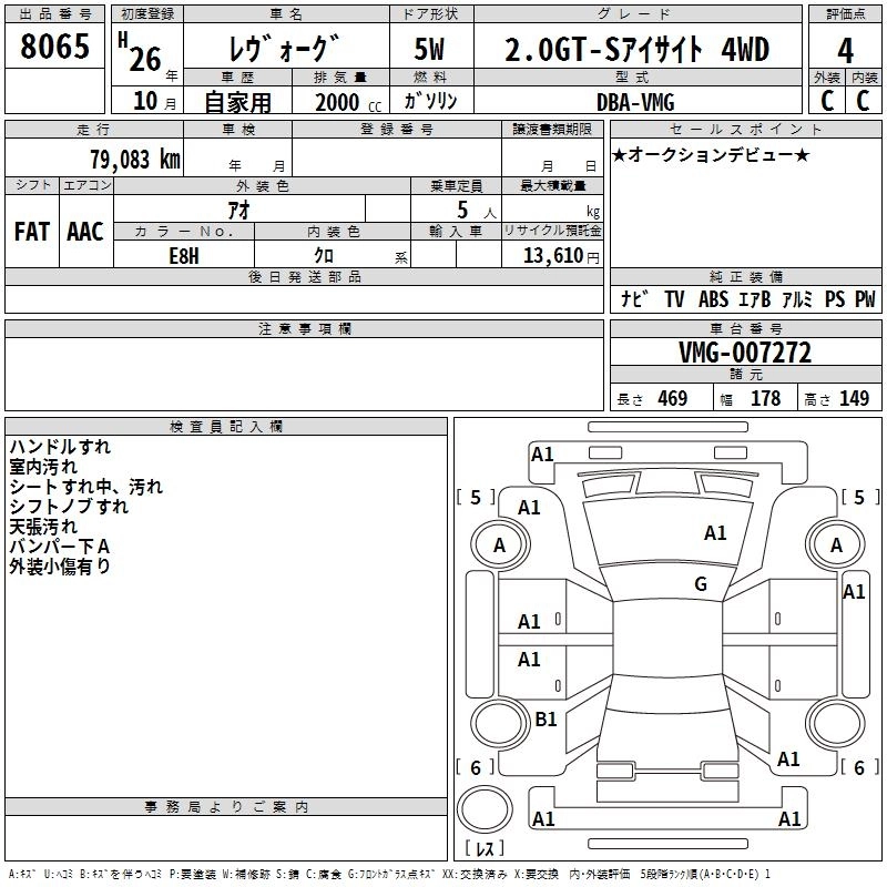 SUBARU LEVORG 2014 г., лот № 8065