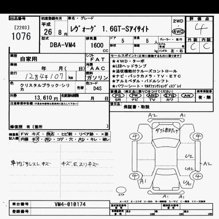 SUBARU LEVORG 2014 г., лот № 1076