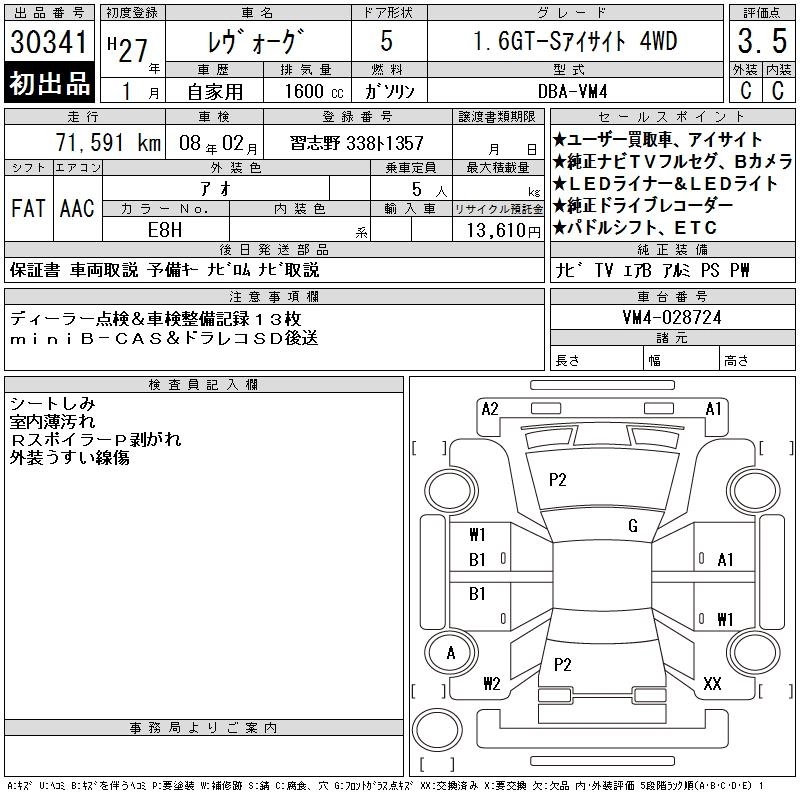 SUBARU LEVORG 2015 г., лот № 30341