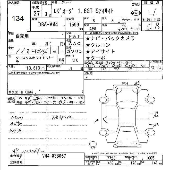 SUBARU LEVORG 2015 г., лот № 134
