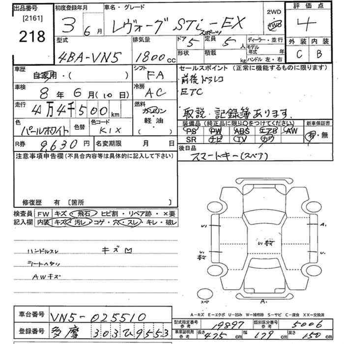 SUBARU LEVORG 2021 г., лот № 218