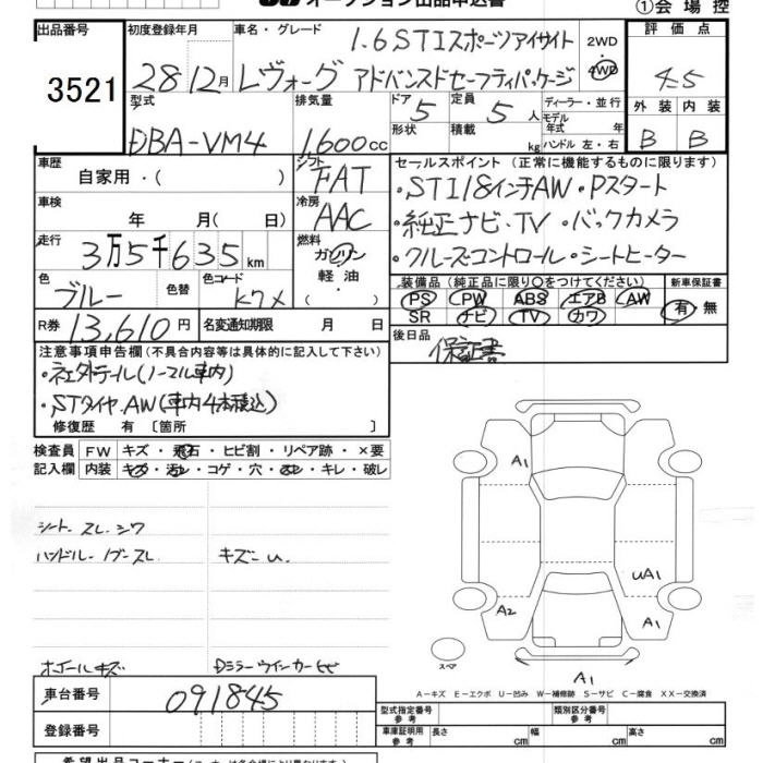SUBARU LEVORG 2016 г., лот № 3521