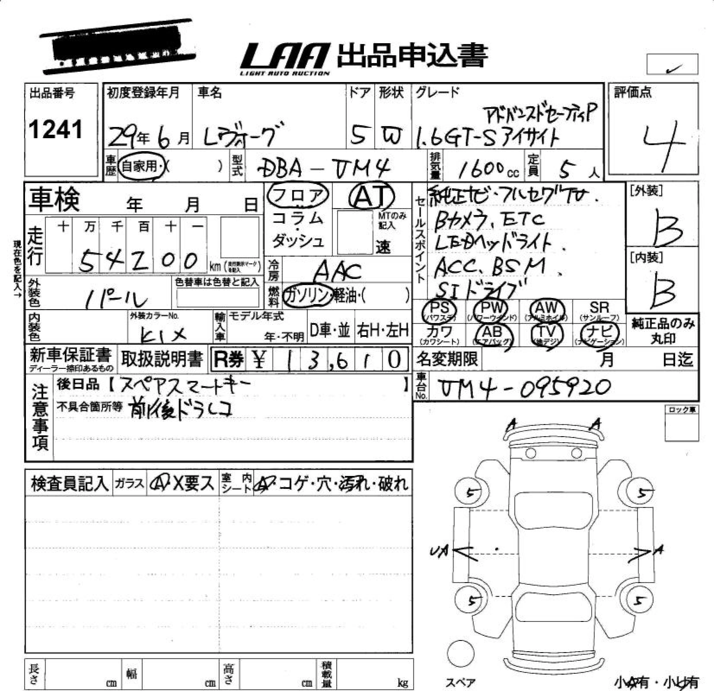 SUBARU LEVORG 2017 г., лот № 1241
