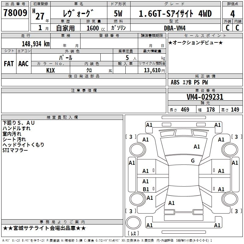 SUBARU LEVORG 2015 г., лот № 78009