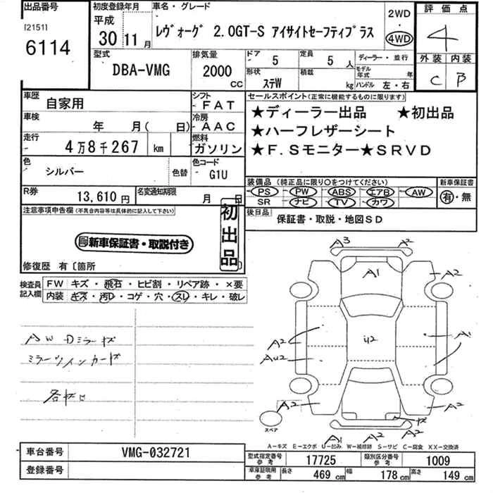 SUBARU LEVORG 2018 г., лот № 6114