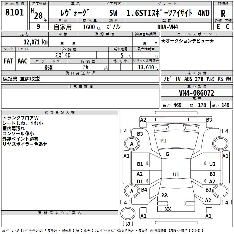 SUBARU LEVORG 2016 г., лот № 8101