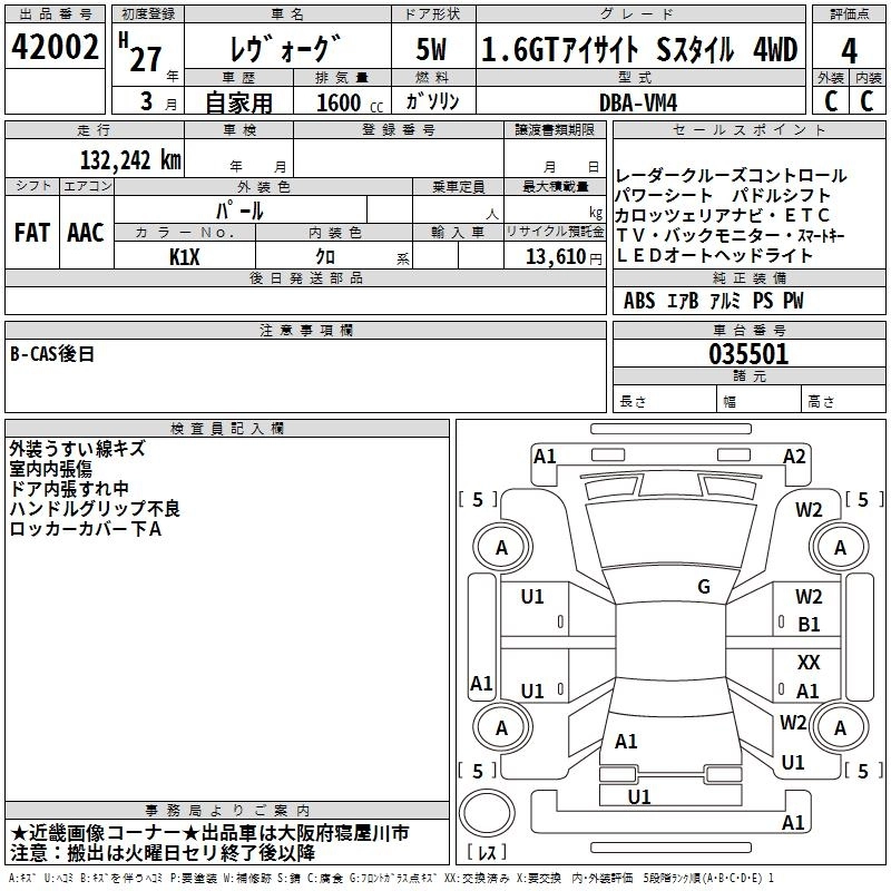 SUBARU LEVORG 2015 г., лот № 42002