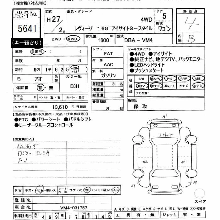 SUBARU LEVORG 2015 г., лот № 5641