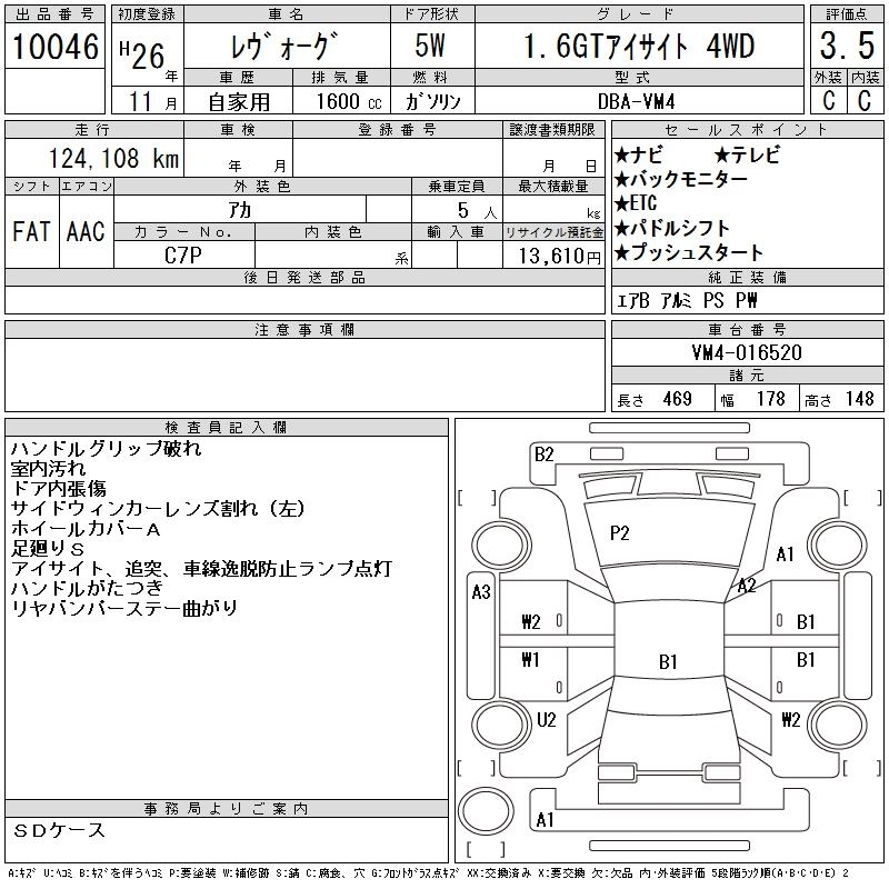 SUBARU LEVORG 2014 г., лот № 10046
