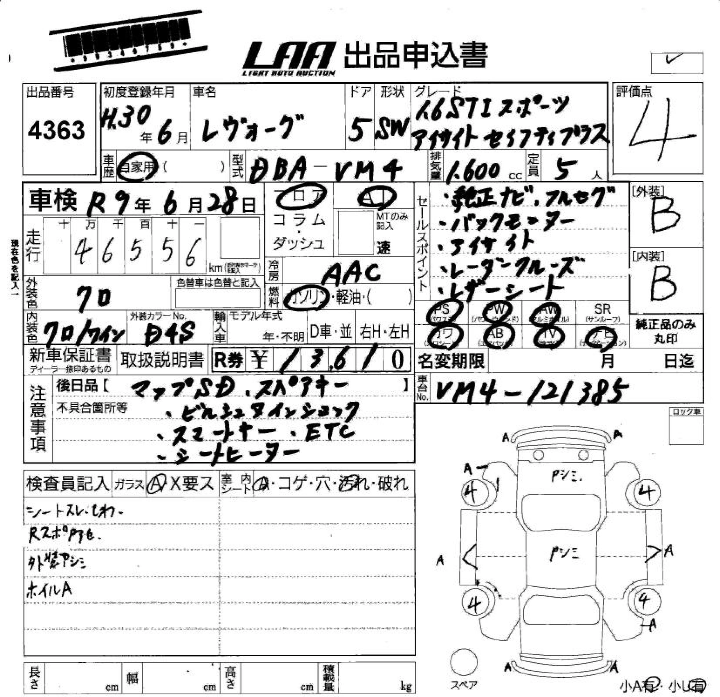 SUBARU LEVORG 2018 г., лот № 4363