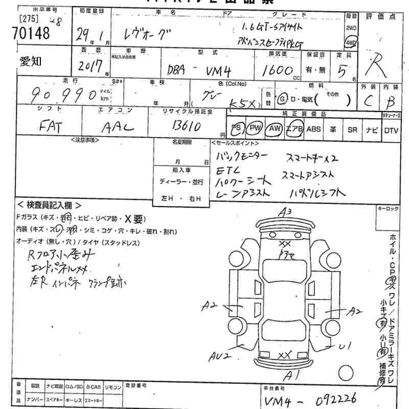 SUBARU LEVORG 2017 г., лот № 70148