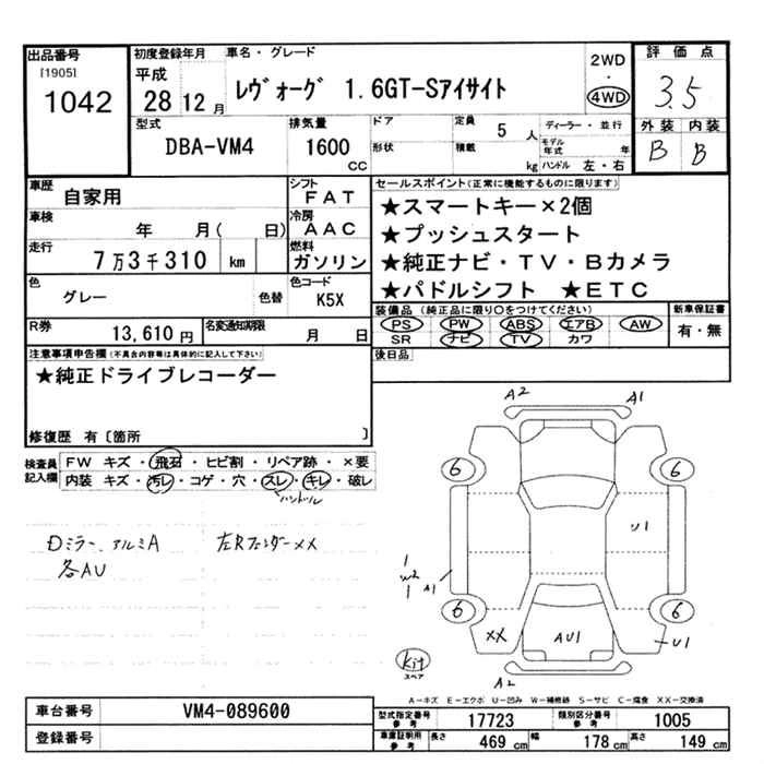 SUBARU LEVORG 2016 г., лот № 1042