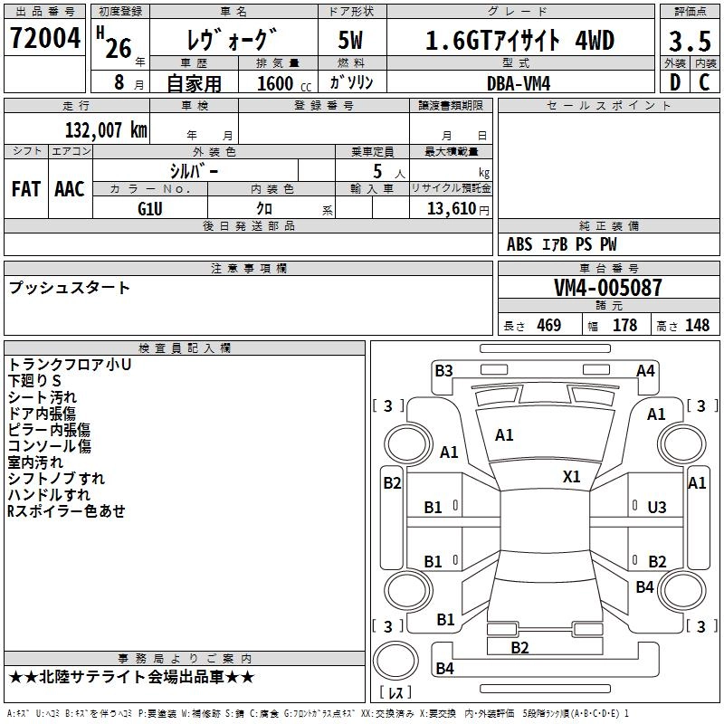 SUBARU LEVORG 2014 г., лот № 72004