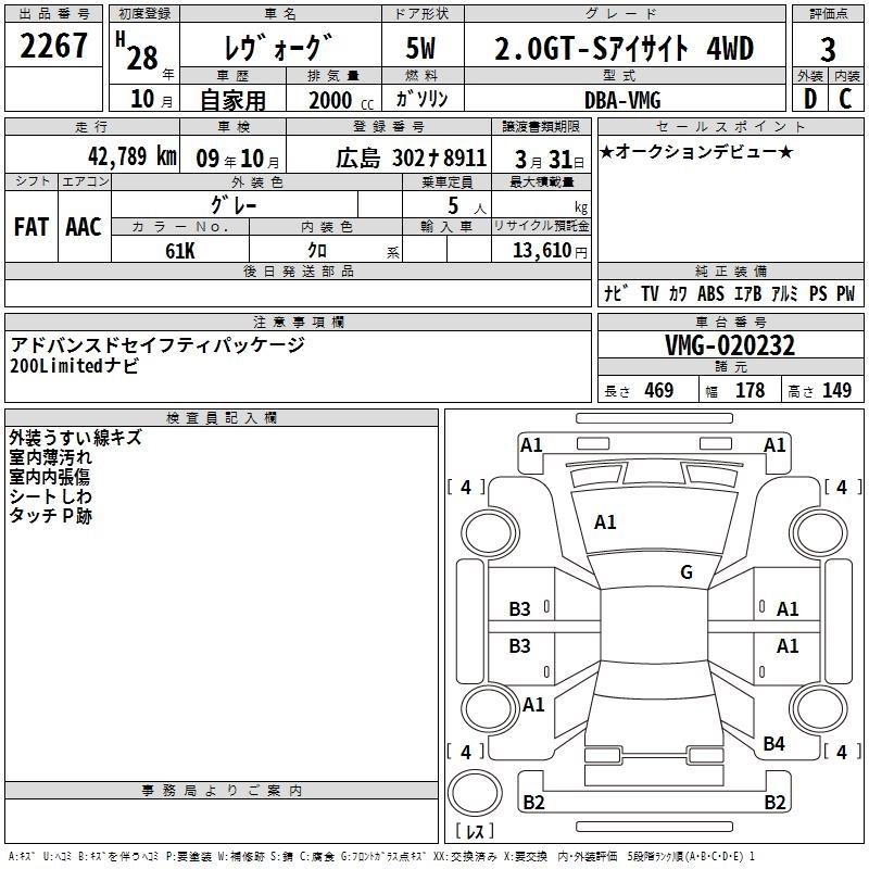 SUBARU LEVORG 2016 г., лот № 2267