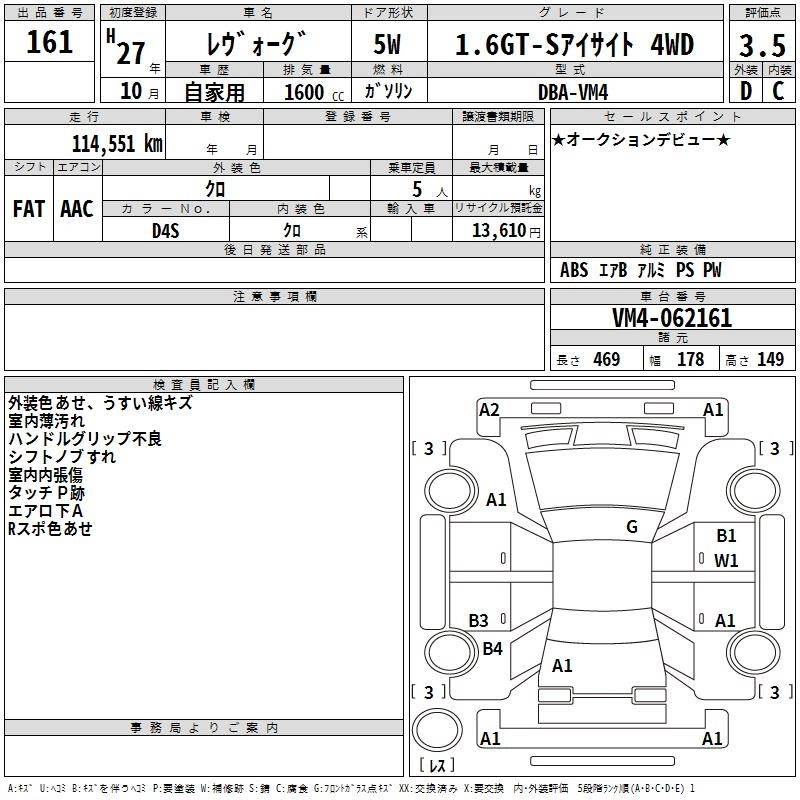 SUBARU LEVORG 2015 г., лот № 161