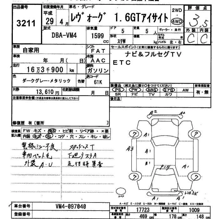 SUBARU LEVORG 2017 г., лот № 3211