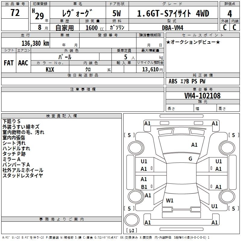 SUBARU LEVORG 2017 г., лот № 72