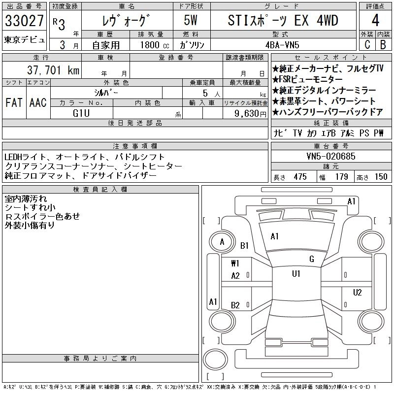 SUBARU LEVORG 2021 г., лот № 33027