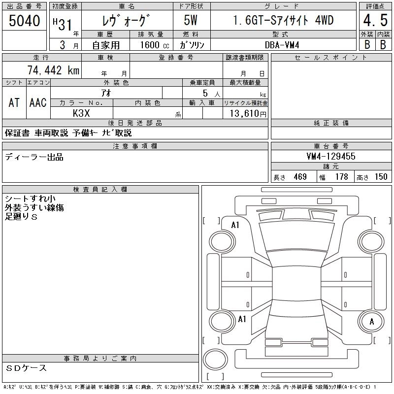 SUBARU LEVORG 2019 г., лот № 5040