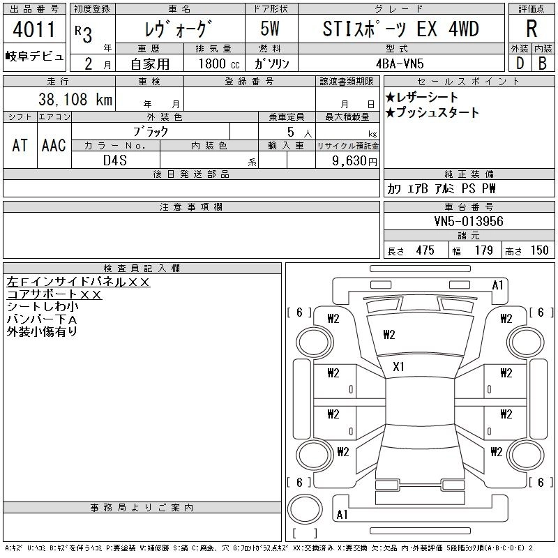SUBARU LEVORG 2021 г., лот № 4011