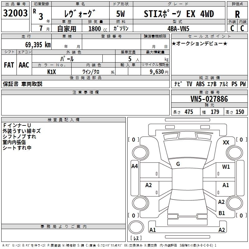 SUBARU LEVORG 2021 г., лот № 32003