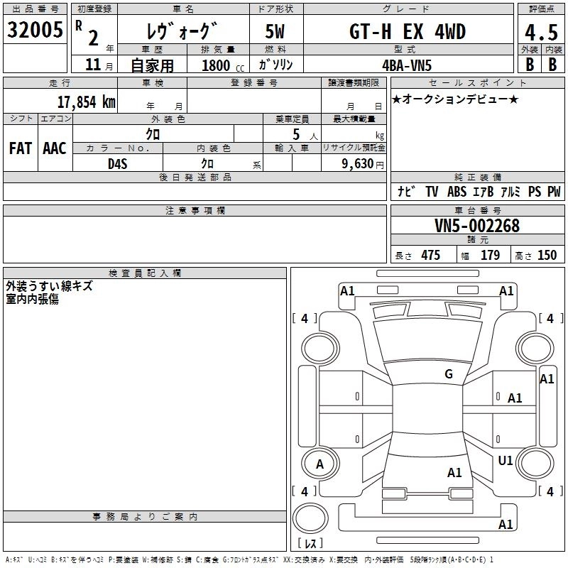 SUBARU LEVORG 2020 г., лот № 32005