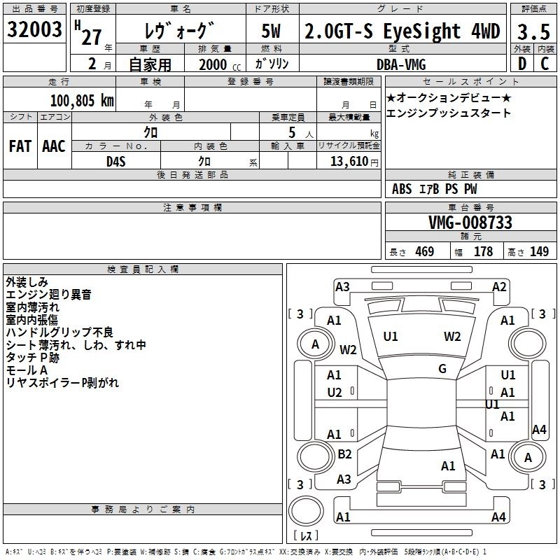 SUBARU LEVORG 2015 г., лот № 32003