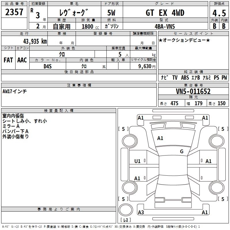 SUBARU LEVORG 2021 г., лот № 2357
