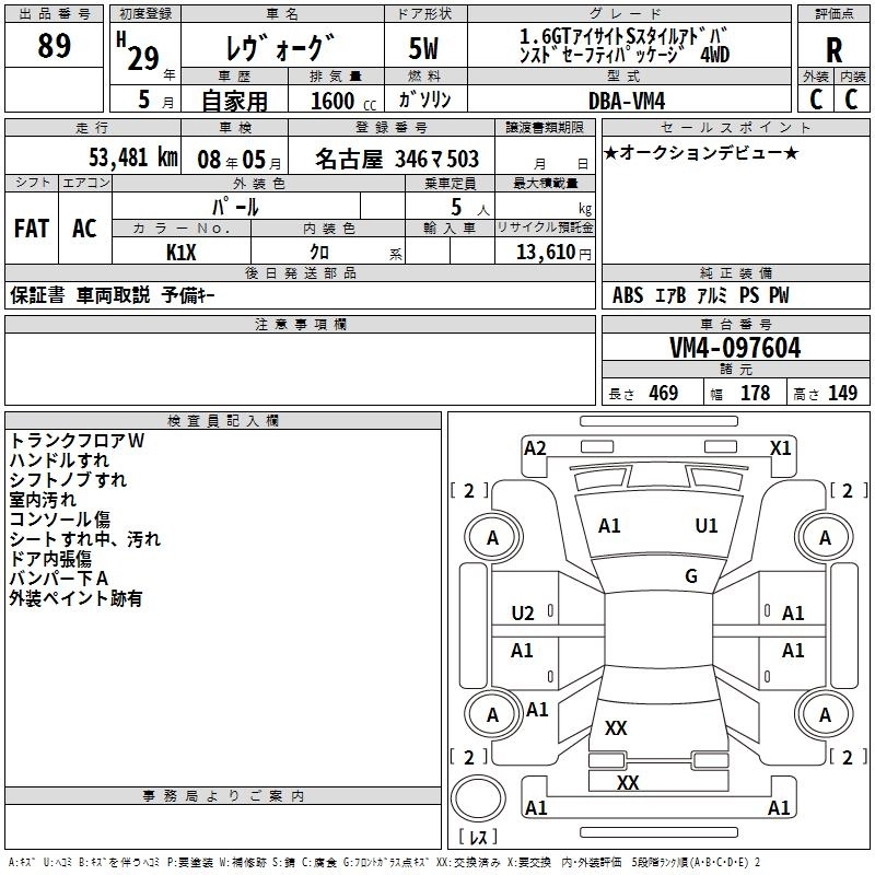 SUBARU LEVORG 2017 г., лот № 89