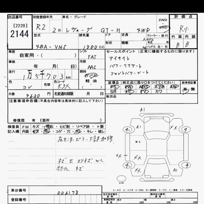 SUBARU LEVORG 2020 г., лот № 2144