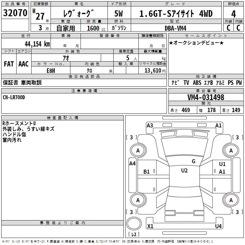 SUBARU LEVORG 2015 г., лот № 32070