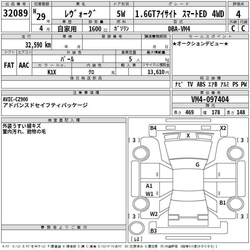 SUBARU LEVORG 2017 г., лот № 32089