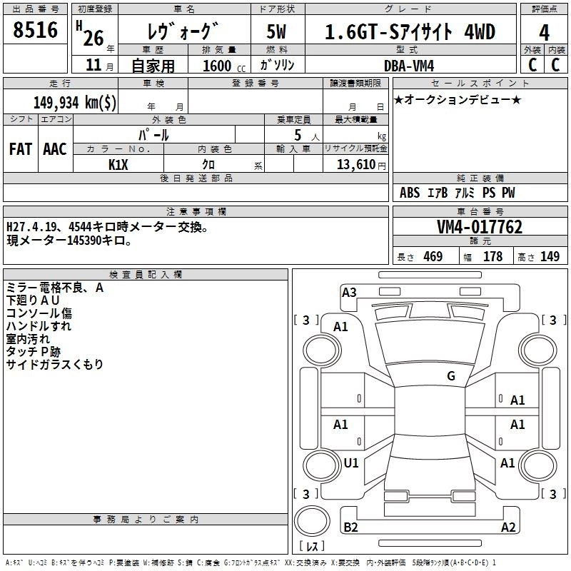 Год выпуска2014 Пробег 150 000 км КузовVM4 Комплектация1.6GT-S EYESIGHT 4WD