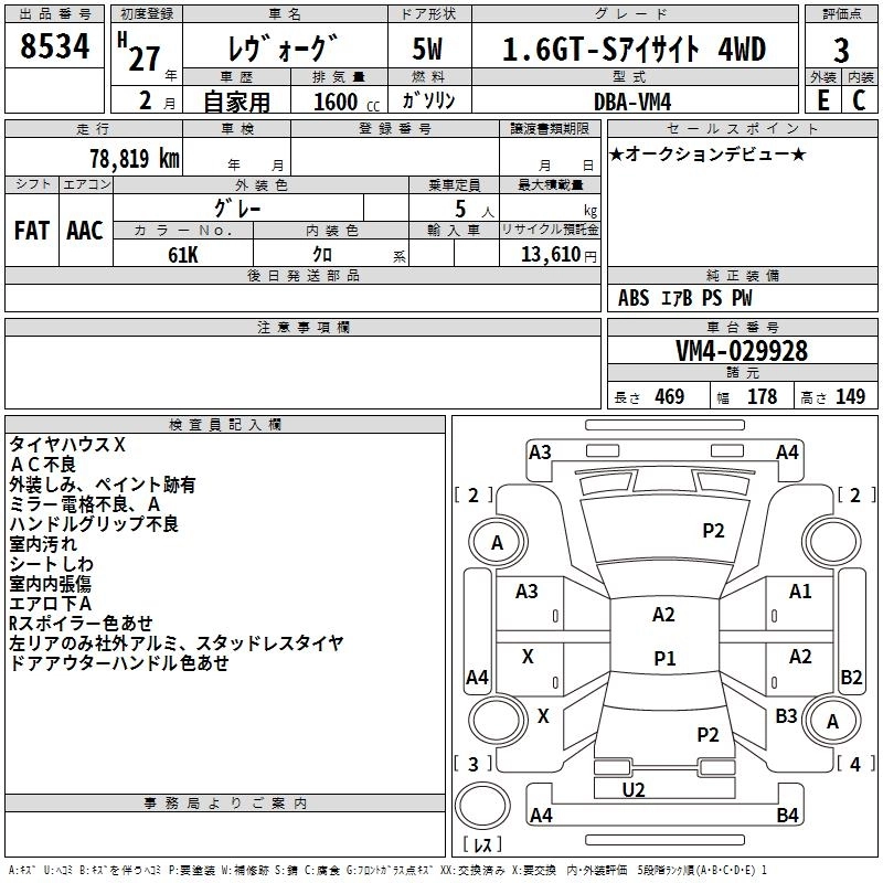 SUBARU LEVORG 2015 г., лот № 8534