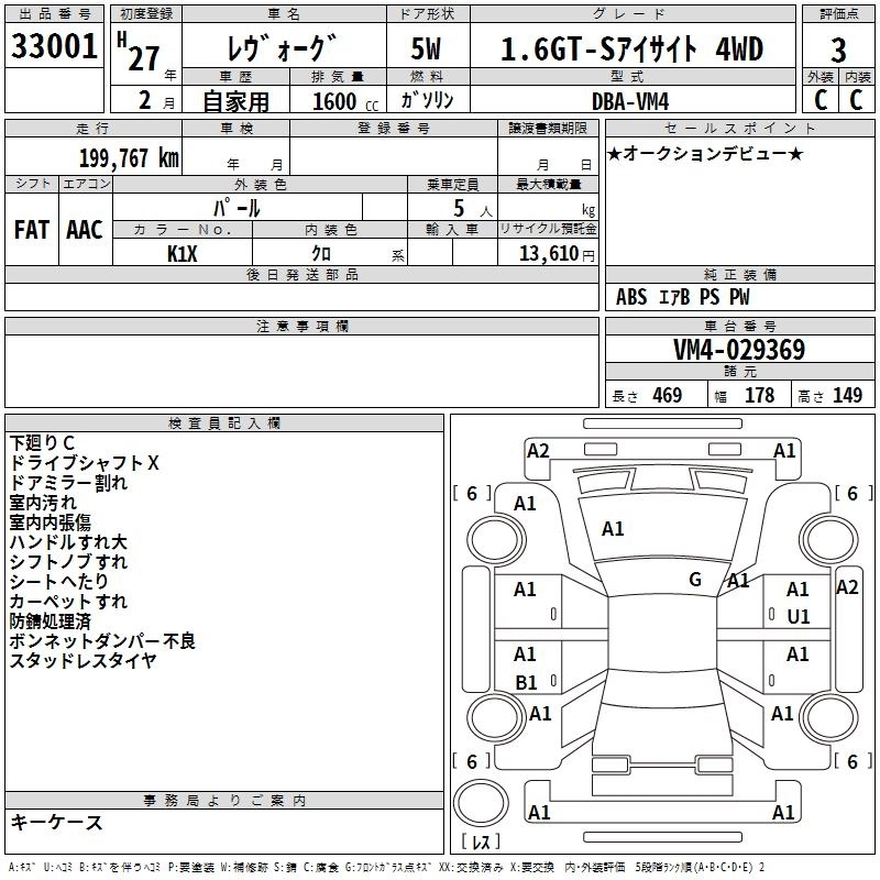SUBARU LEVORG 2015 г., лот № 33001