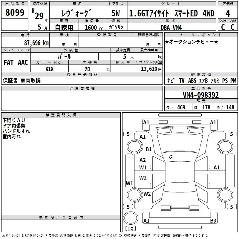SUBARU LEVORG 2017 г., лот № 8099