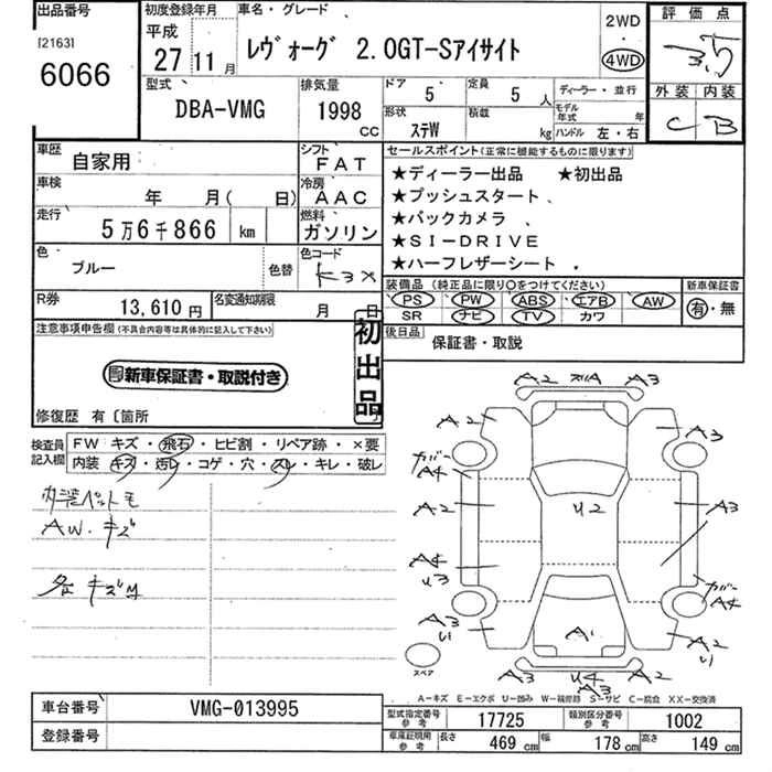 SUBARU LEVORG 2015 г., лот № 6066